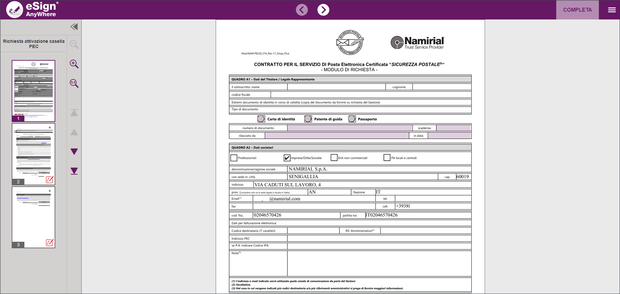 Verifica i dati inseriti nel contratto precompilato e finalizza la procedura di firma cliccando su "Firma":